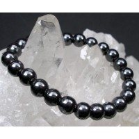 Pulsera elástica realizada en hematite, con un diseño de piezas irregulares pulidas.