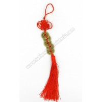 Colgante talismán con cinco monedas metálicas que simbolizan la Abundancia y la riqueza....