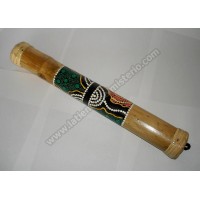 Hecho de un tubo largo y hueco de madera que se rellena con semillas o pequeñas esquirlas de...