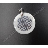 Colgante de acero plateado incrustado en nácar del símbolo de la Flor de la vida. Aporta pureza,...